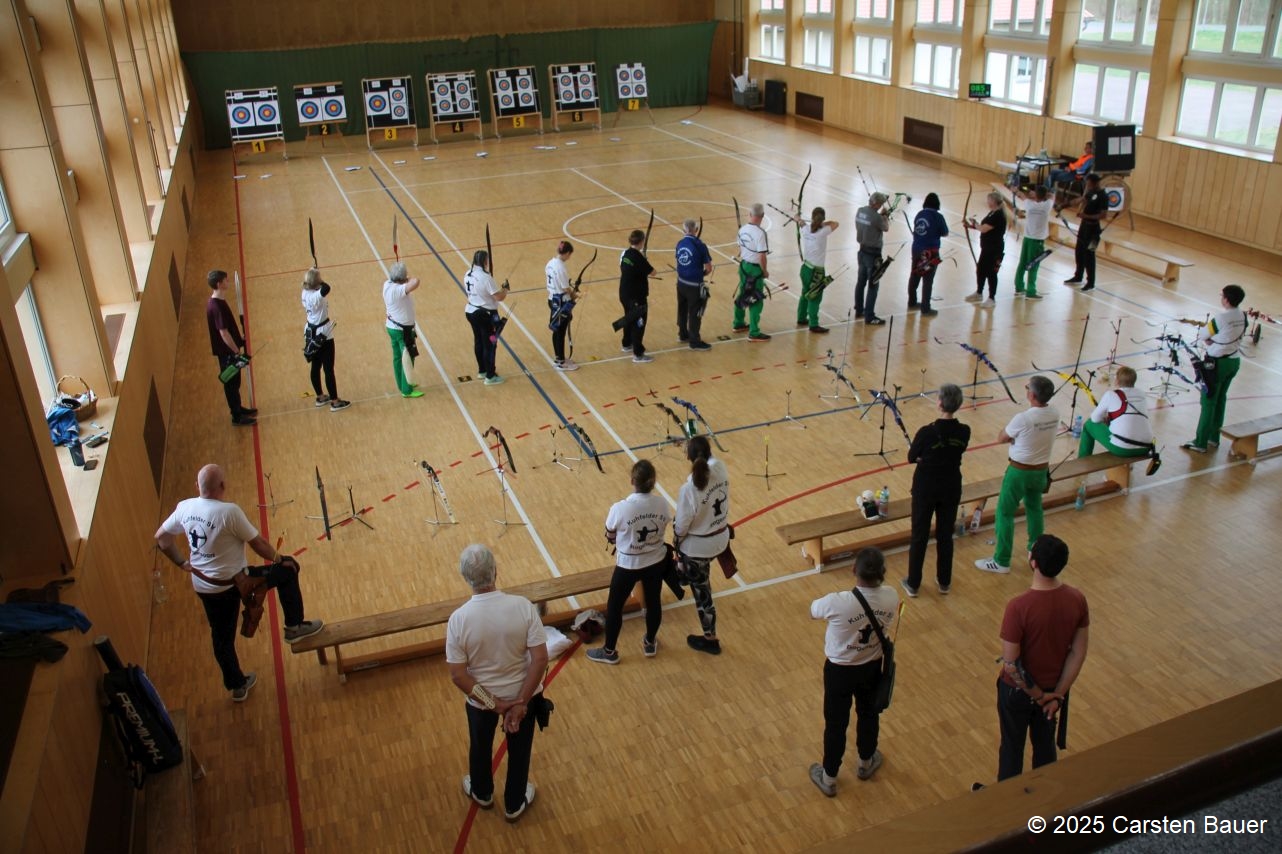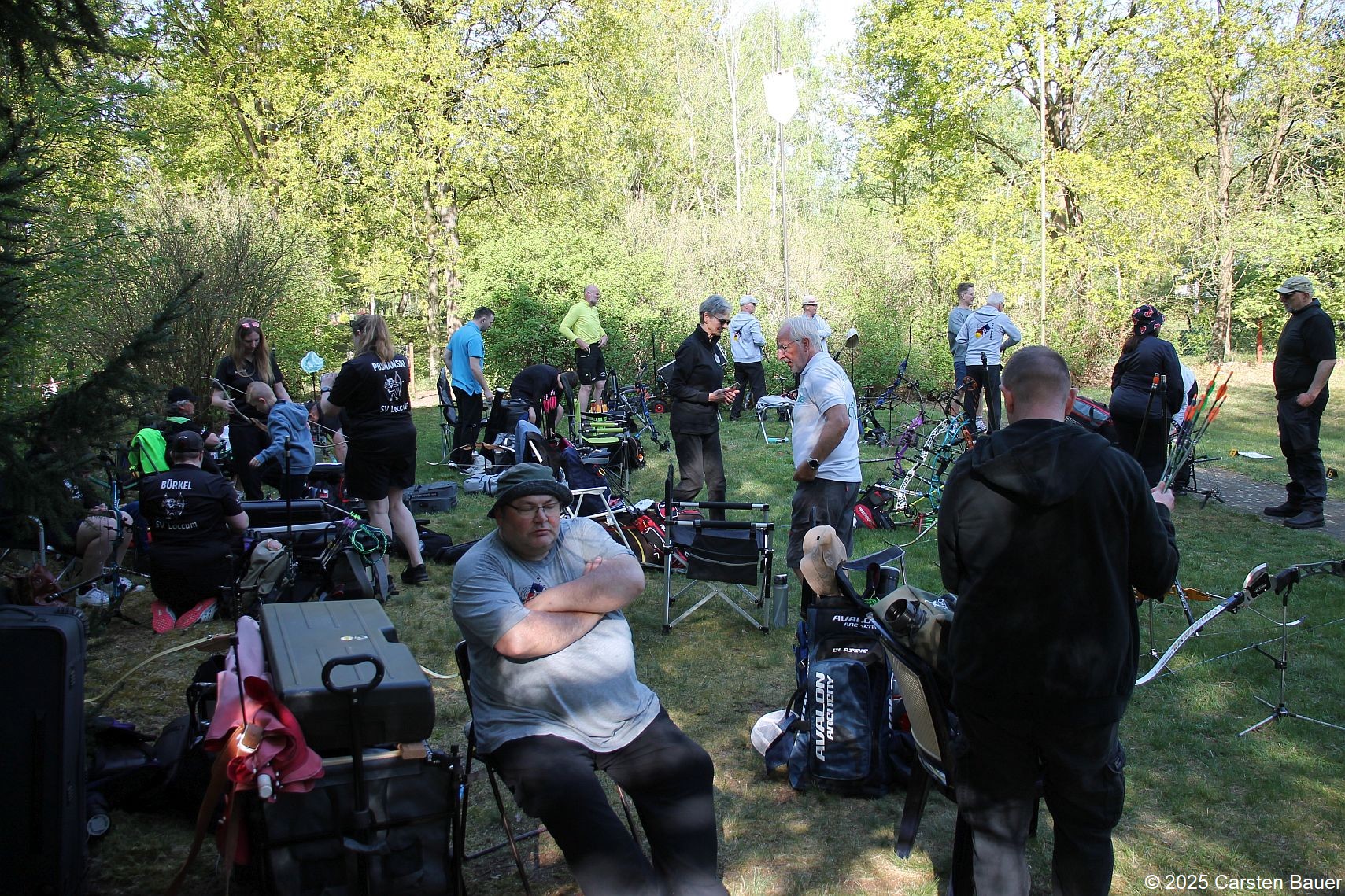 Das alljährliche 30-Meter-Turnier lockt immer viele Bogensportler hierher. In diesem Jahr wollten auch Carsten und Susanne B. den Verein und dieses Turnier kennenlernen. Außerdem trafen sie auch noch einen Bogensportler vom ausrichtenden Verein wieder, mit dem sie vor ein paar Jahren zusammen den Trainerlehrgang absolviert hatten.