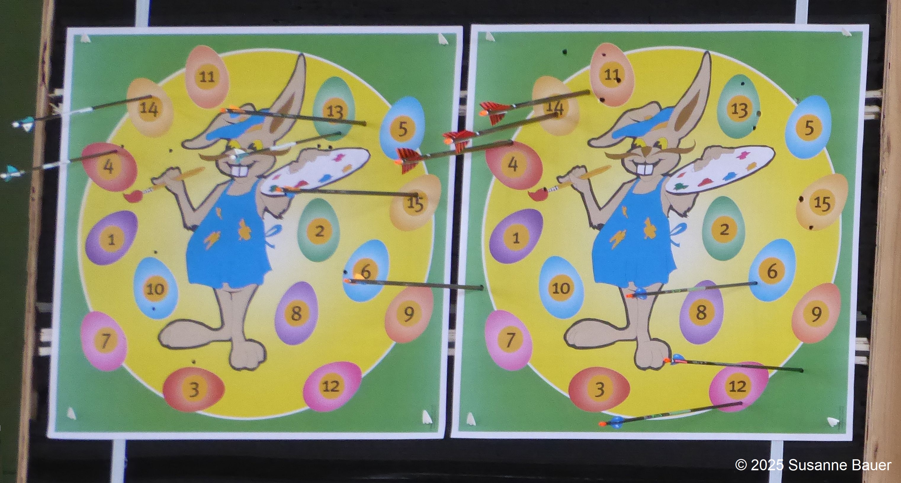 Es wurden jetzt keine Ringe mehr gezählt, sondern die Punkte auf den Ostereiern. Daneben zu schießen oder den Osterhasen zu treffen bedeutete dagegen Punktabzug. Diese Runde machte sehr viel Spaß und ging viel zu schnell vorbei.