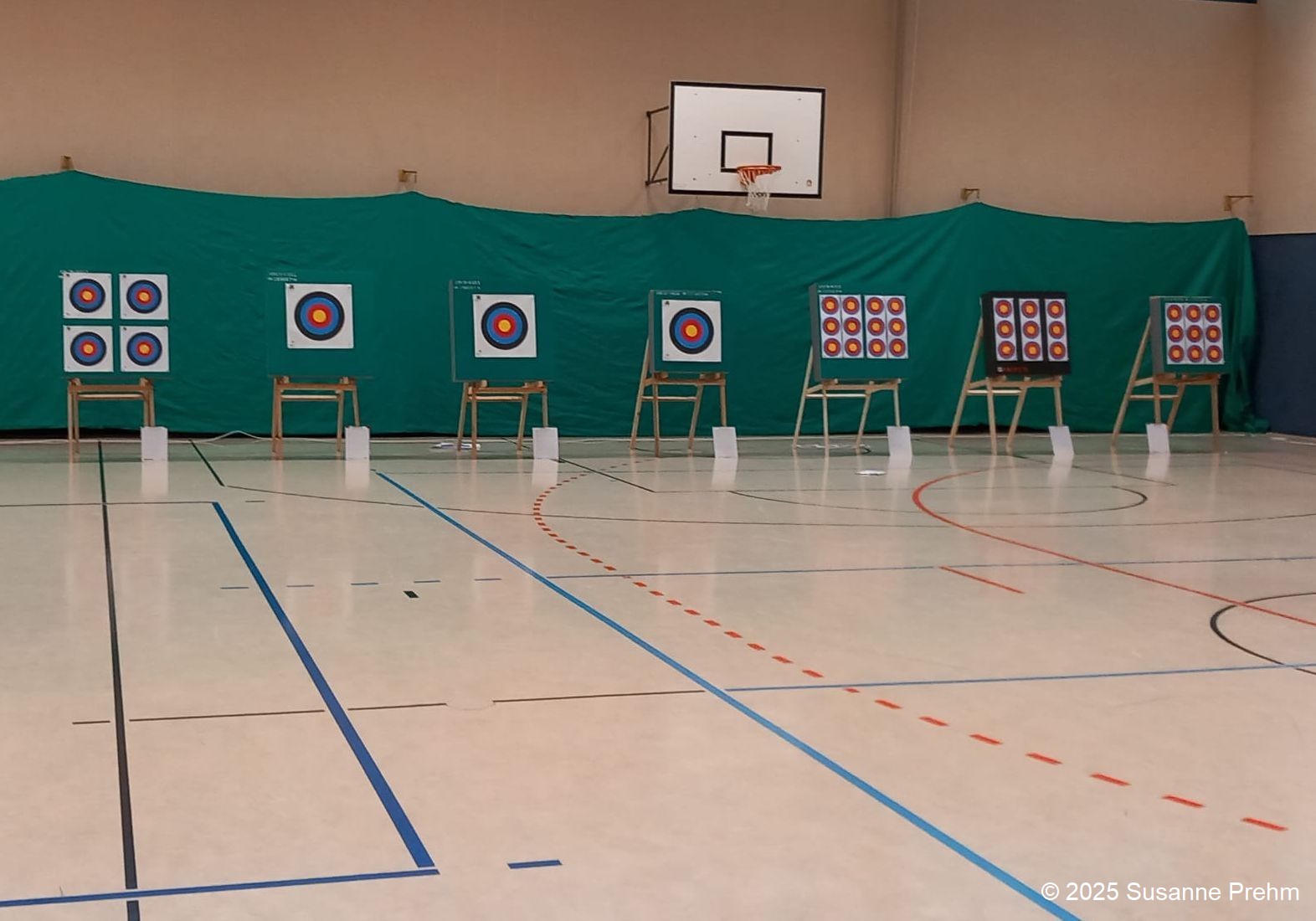In der Grundschulsporthalle standen 10 Scheiben, bestückt mit verschieden große Auflagen. Auch drei 60-cm-Auflagen waren dabei, u. a. für unsere Neuen. Zum Vergleich: beim Wendland Cup können wir maximal 21 Scheiben in der Halle unterbringen.
