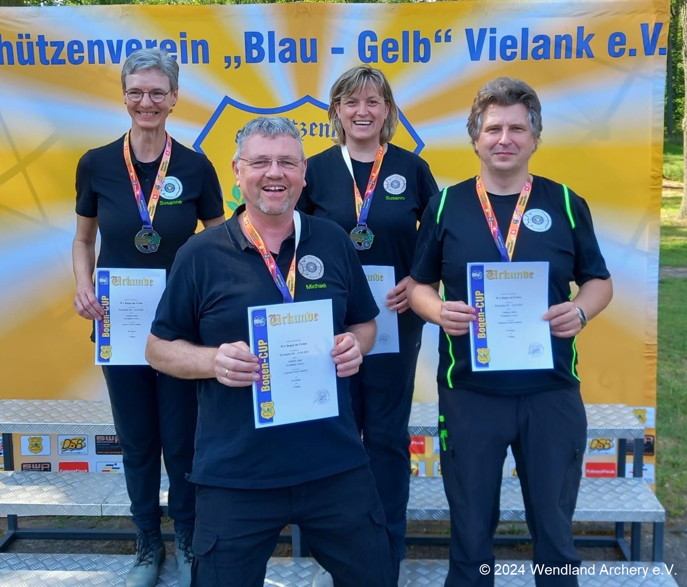 Knapp zwei Wochen nach unserer Vereinsmeisterschaft ging es für Susanne P., Günther, Kilian, Martin, Michael, Carsten und Susanne B. nach Vielank. Das Wetter war so, wie es sich jeder Bogensportler wünscht: kein Wind, gleichmäßige Lichtverhältnisse und angenehme Temperaturen. Kurz: rekordverdächtig.