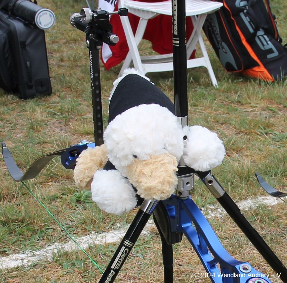 Bei Susanne P. lief es von Anfang an gut. Aber in der 4. Passe der zweiten Runde fiel ihr der Button auseinander. Nach einer schnellen Reparatur durch Kilian flogen die Pfeile erst mal links an der Scheibe vorbei. Davon ließ sich Susanne P. aber nicht aus der Ruhe bringen. Als erfahrene Blankbogenschützin wusste sie, was sie tun musste. Sie zielte entsprechend weit nach rechts und traf sogar dreimal in die 9.