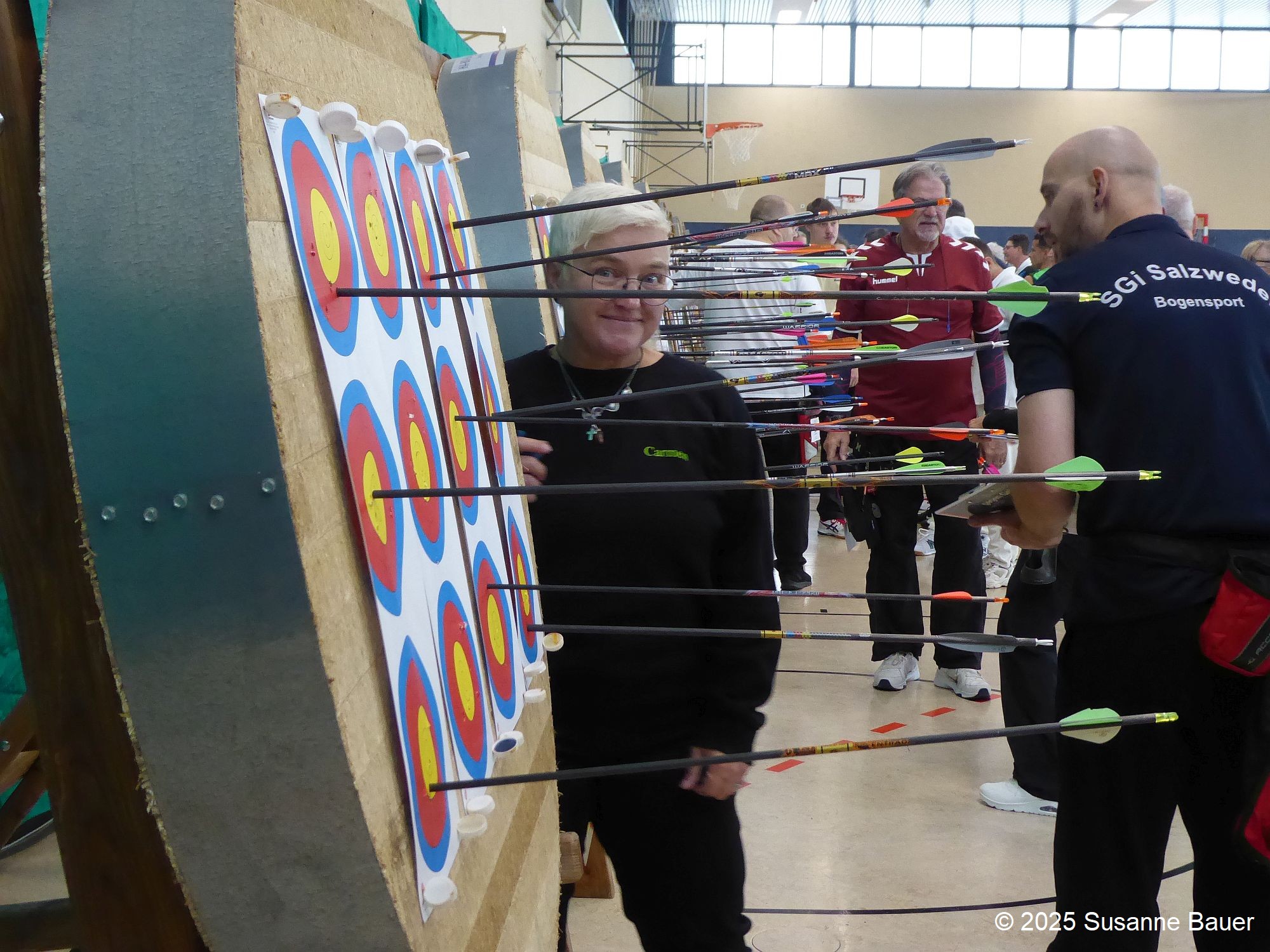 Die Zeit bis zum ersten Probepfeil verging wie im Flug. Die Schützen konzentrierten sich dann auf den Wettkampf. Im Vorraum beim Catering wurde es ruhiger. Es blieb Zeit, sich mit Besuchern zu unterhalten, Fotos zu machen oder auch Vorbereitungen für später zu treffen.