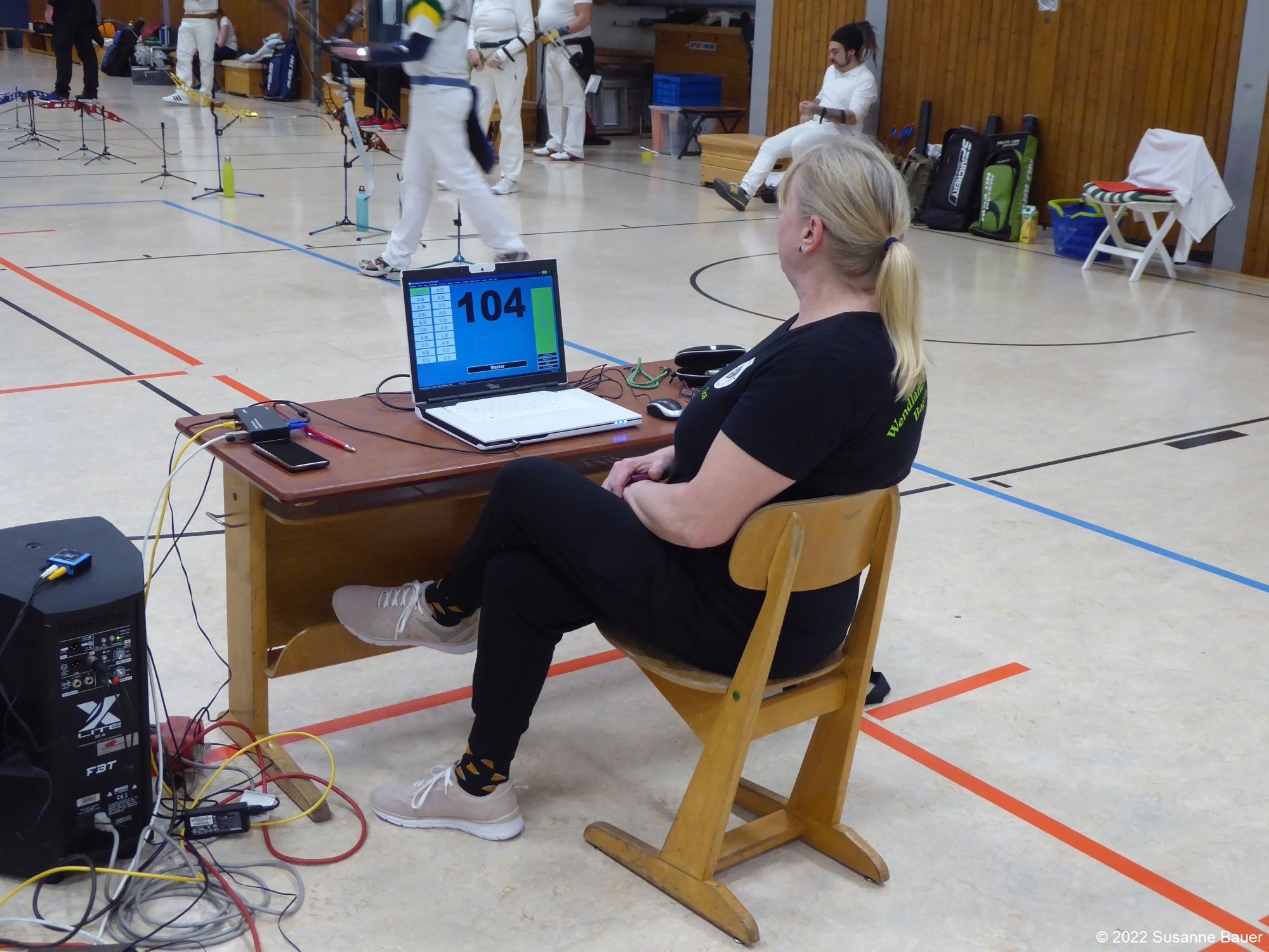 Neben den Teilnehmenden aus unserem Verein sorgten auch einige Mitglieder dafür, dass rund um die Meisterschaft alles gut lief. Tina hatte wohl den wichtigsten Job überhaupt bei dieser Meisterschaft: sie bediente die Zeitanzeige.