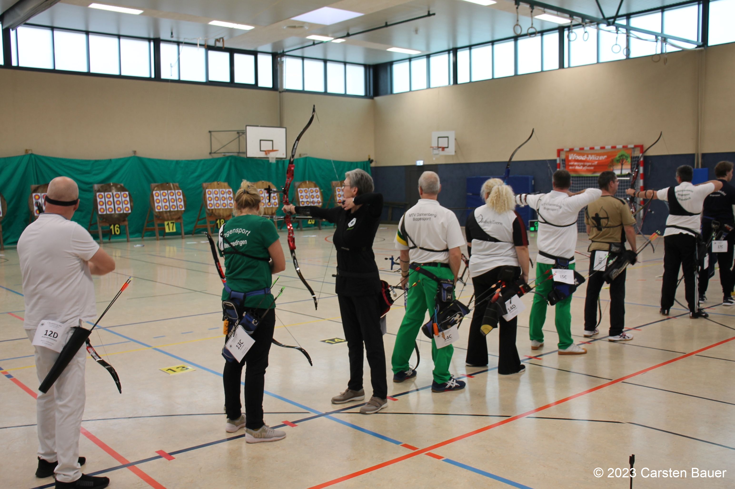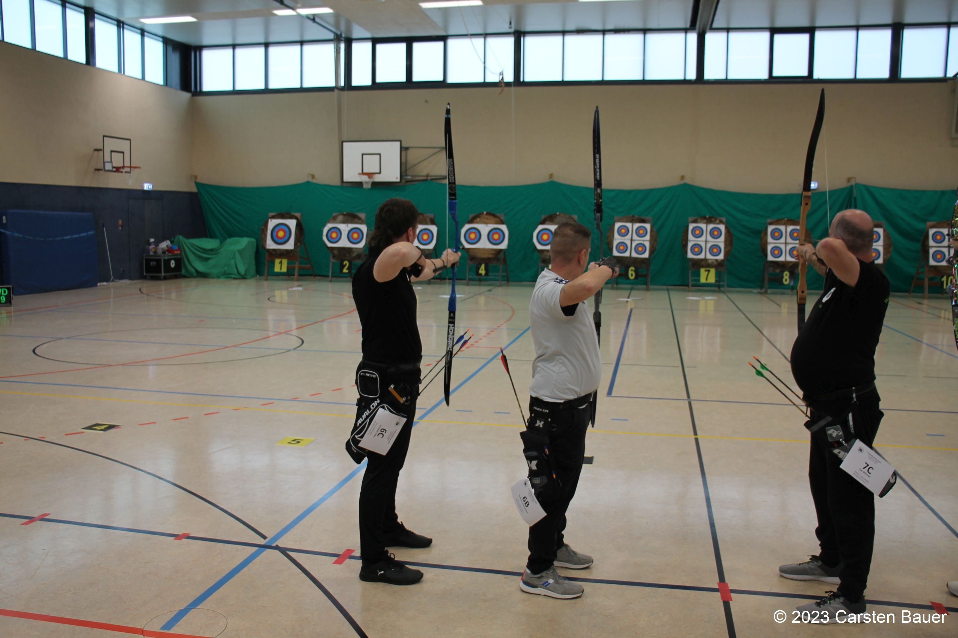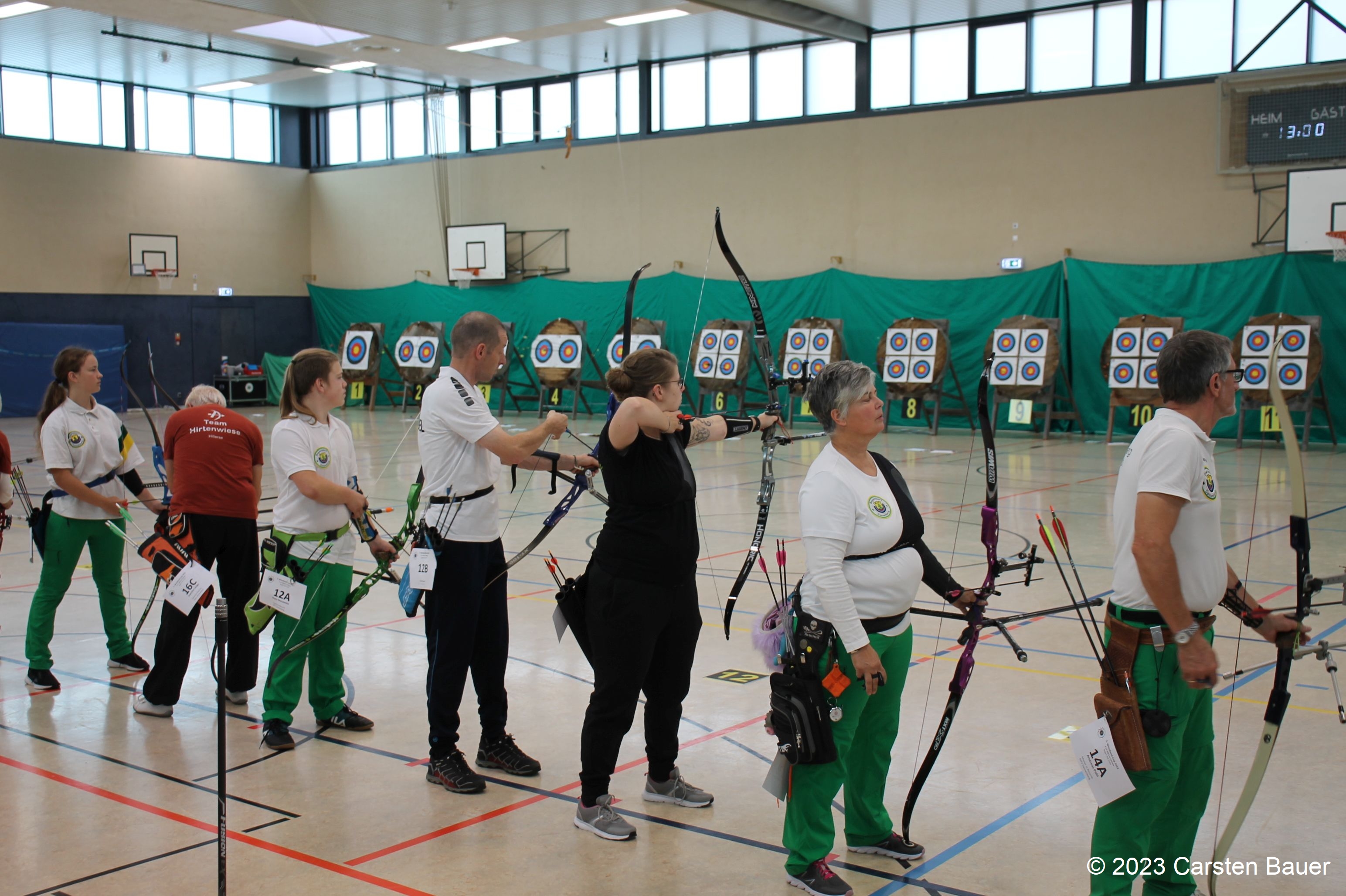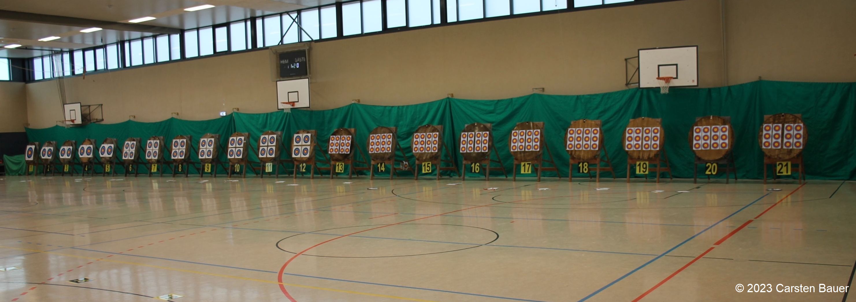 Viele Helfer waren am Samstag vor dem Turnier dabei, um die Halle für das Turnier und den Vorraum für das Catering herzurichten. Ganze 21 Scheiben haben wir aufgestellt. Zum Vergleich: im Sommer bei der diesjährigen Landesmeisterschaft standen 25 Scheiben auf dem Platz.