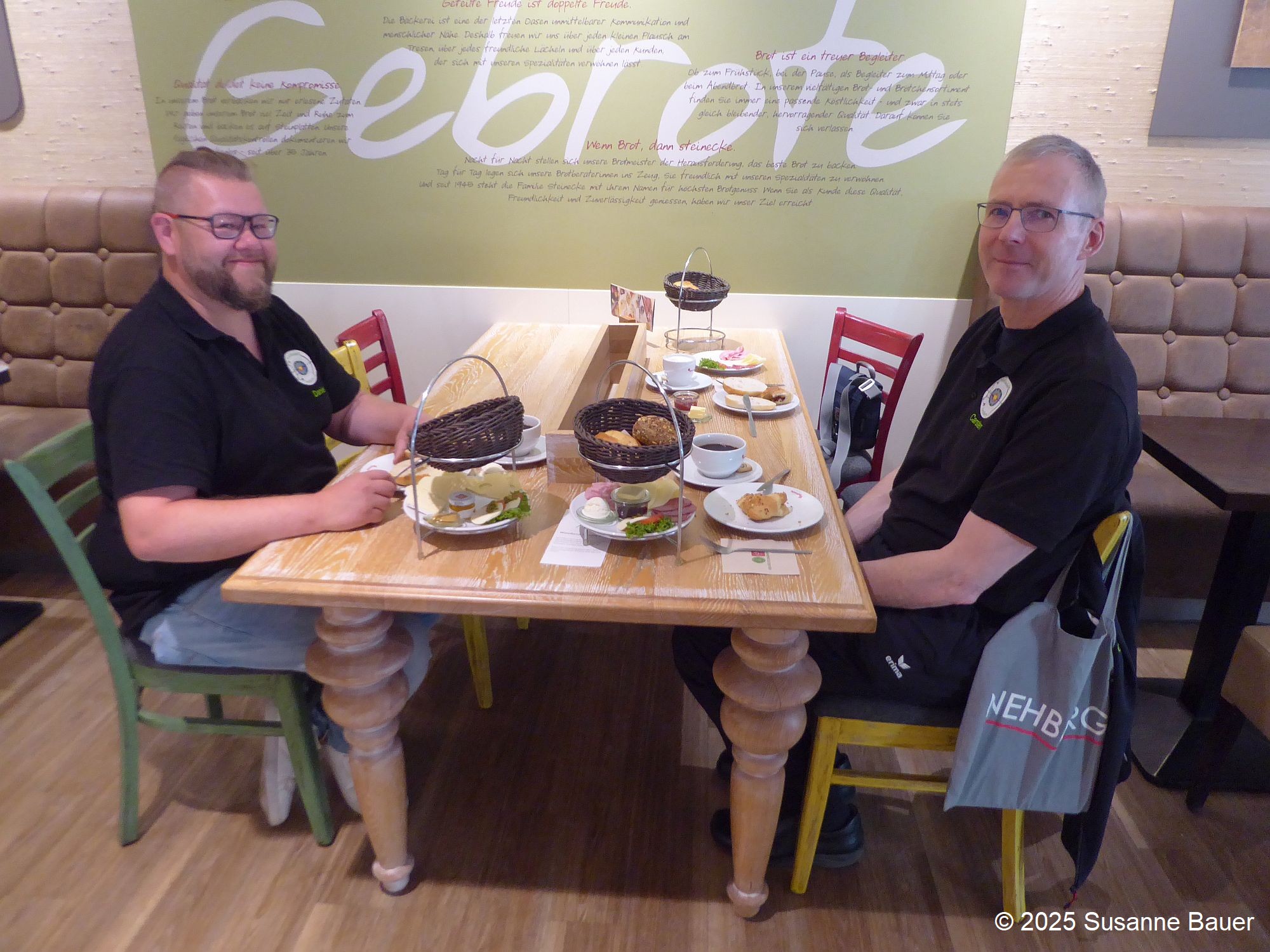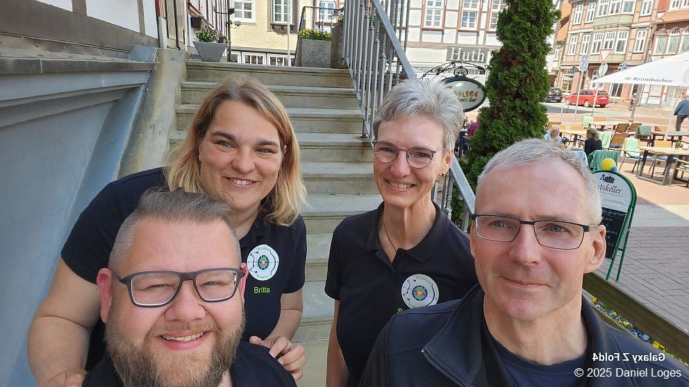 Daniel, Carsten und Susanne B. begannen diesen Tag mit einem Frühstück in Lüchow. Etwas später kam dann auch Britta dazu. Wir trugen alle unsere Vereinstrikots, was das Interesse bei anderen Gästen weckte und zu netten Gesprächen über unseren Sport führte.
