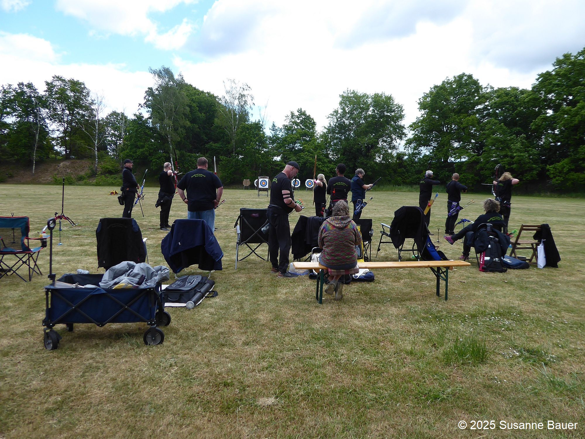 Das alljährliche 30-Meter-Turnier lockt immer viele Bogensportler hierher. In diesem Jahr wollten auch Carsten und Susanne B. den Verein und dieses Turnier kennenlernen. Außerdem trafen sie auch noch einen Bogensportler vom ausrichtenden Verein wieder, mit dem sie vor ein paar Jahren zusammen den Trainerlehrgang absolviert hatten.
