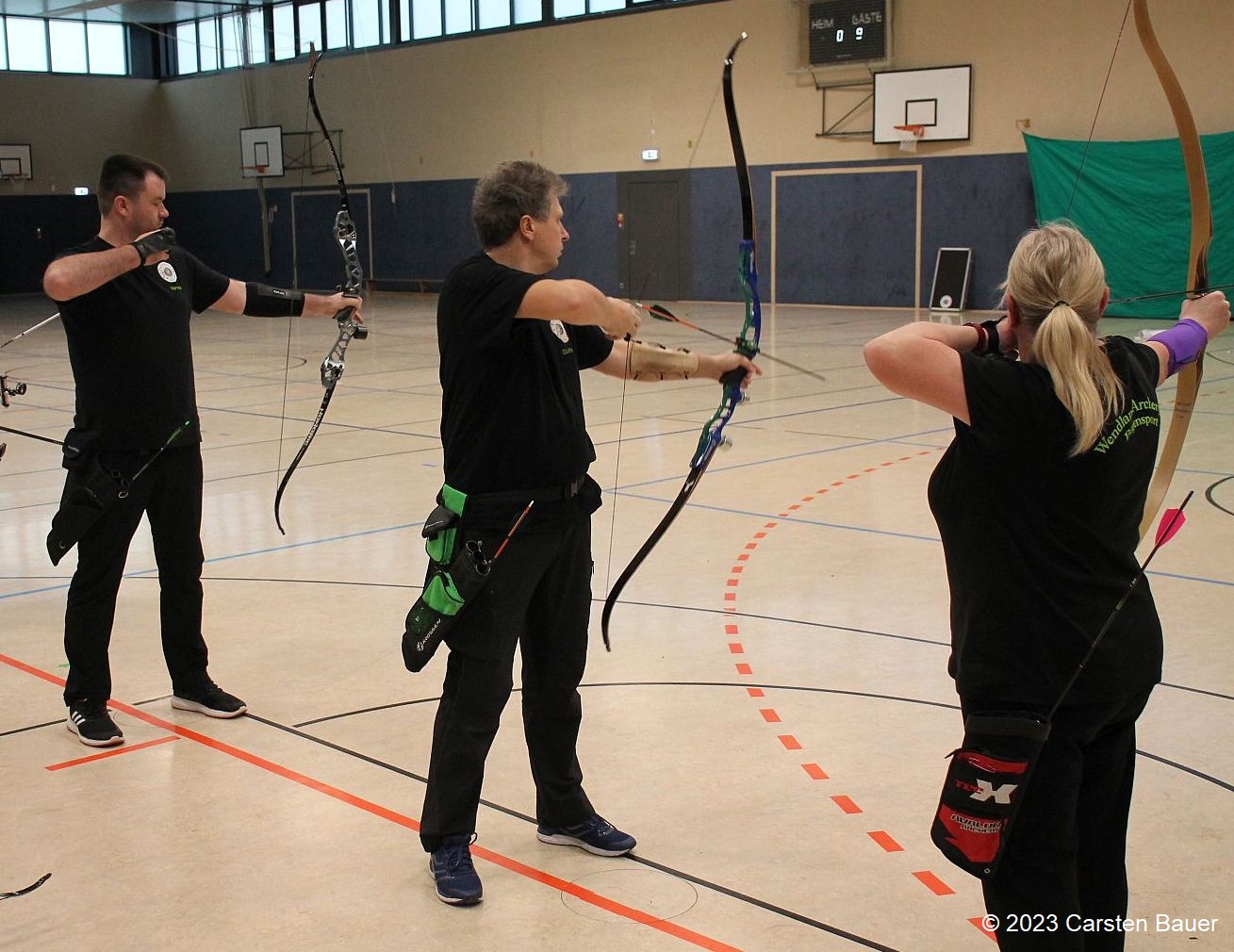 Das Wochenende vom 8. bis 10. März stand dann für Carsten und Susanne B. voll im Zeichen des Bogensports. Am Freitag holte Susanne B. sich ihre Startnummer, am Samstag schauten beide bei Chris aus dem Nachbarverein zu und am Sonntag stand Susanne B. dann selbst an der Schießlinie.