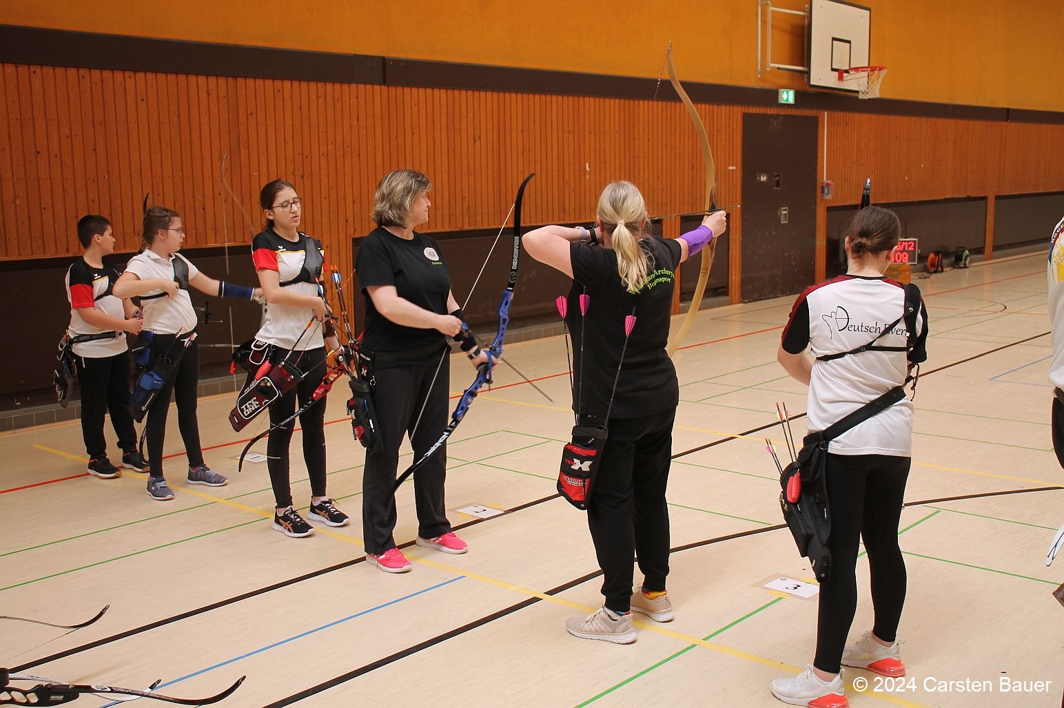 Schon im letzten Sommer beim Kauf ihres neuen Bogens erzählte Susanne B. ihrem Bogensporthändler, der auch Leistungstrainer ist, dass ihr Ziel in der Hallensaison 2024 die Teilnahme an der Deutschen Meisterschaft ist. Seine Worte an sie: „Das schaffst du.“