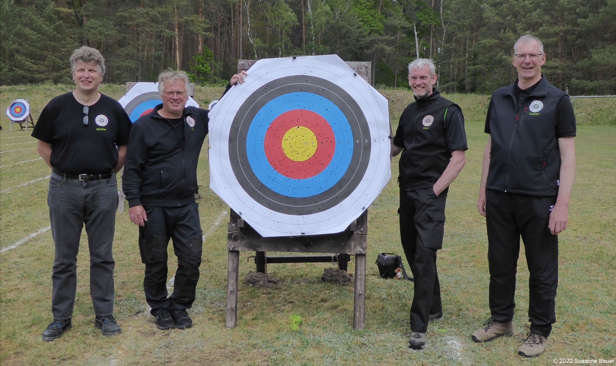 Sommerlich warmes Wetter empfing die 15 Teilnehmenden der diesjährigen Kreismeisterschaft auf dem Bogensportplatz in Dannenberg am 11.06.2022. Aus unserem Verein nahmen Kilian Schmidt, Jörg Kaczmarek, Günther Gehrke und Carsten und Susanne Bauer daran teil.