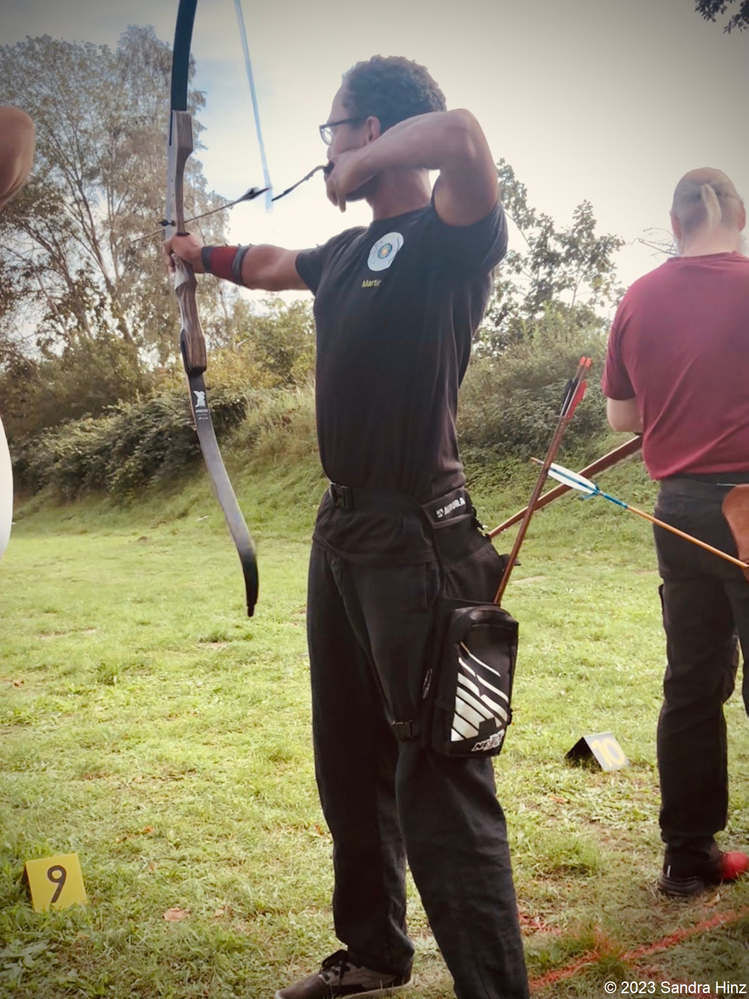 Dann war es soweit. Bei der Begrüßung bekamen wir noch den netten Hinweis, dass es sich um ein Turnier handeln würde. Also, wenn ein Pfeil mal nicht ganz so exakt stecken sollte, wäre es doch toll, wenn wir großzügig werten würden. Dieser augenzwinkernde Hinweis war bestimmt auch an die überehrgeizigen Schützinnen und Schützen gerichtet, die es einfach bei jedem Turnier gibt