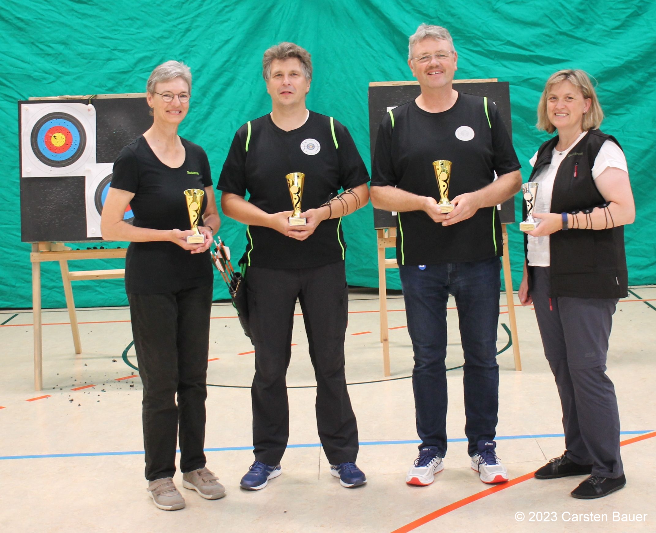 Susanne B., Susanne P., Günther und Michael steigerten sich im Vergleich zum letzten Jahr und schafften es mit ihren Ergebnissen auf die vorderen Plätze. Wir konnten drei goldene und eine silberne Trophäe mit nach Hause nehmen! Was für ein toller Erfolg für unseren Verein.